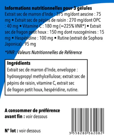 75mg d’Aescine, 40mg d'OPC et 7,5mg de Ruscogénines